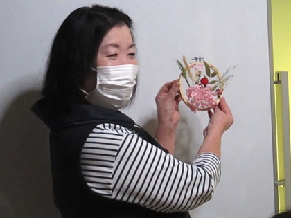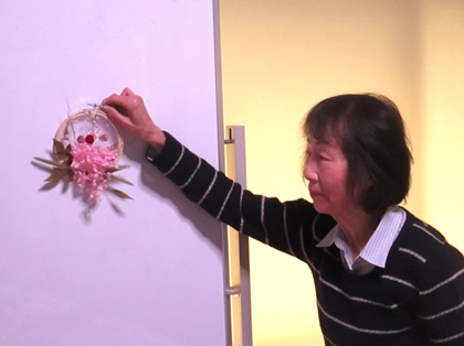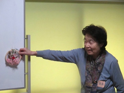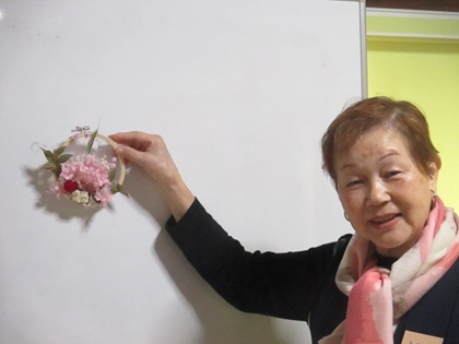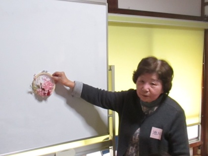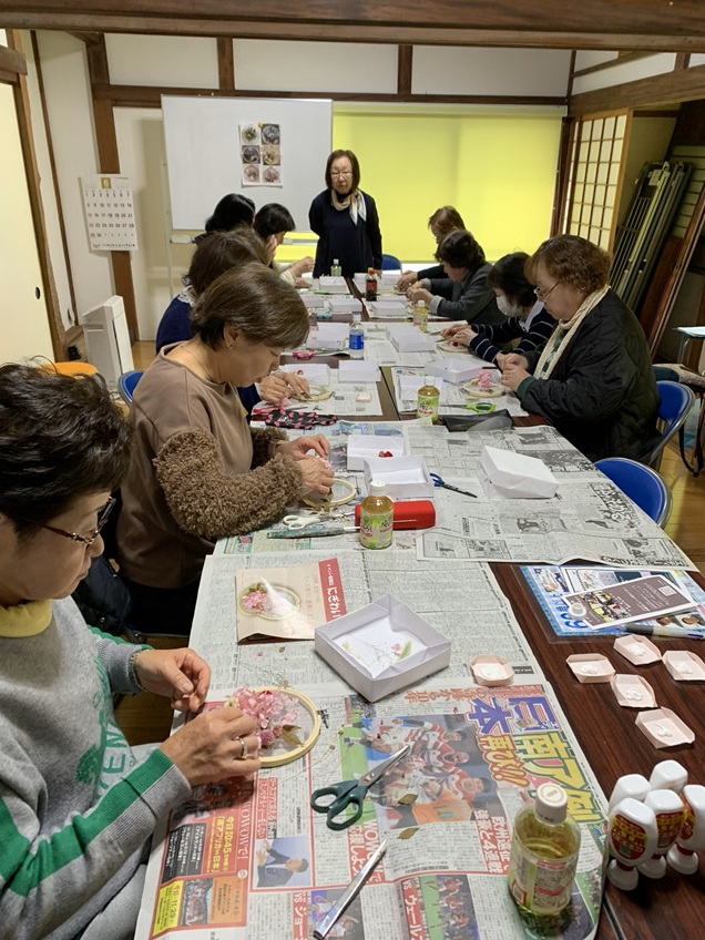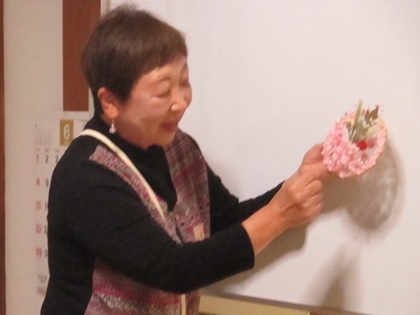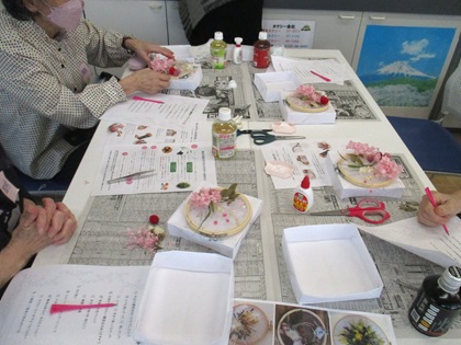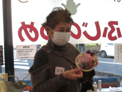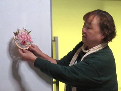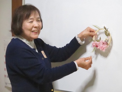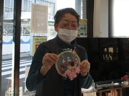 当日は、シルバー人材センターおよび女性委員会「マ・ドンナ伊東」の活動紹介の後、カレイドフレーム(刺繍枠)とドライフラワーを使ったオリジナルリースづくりを楽しみました。