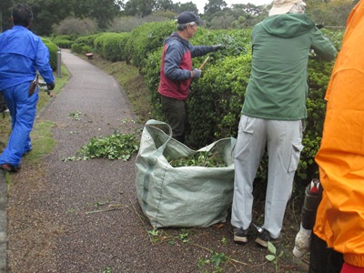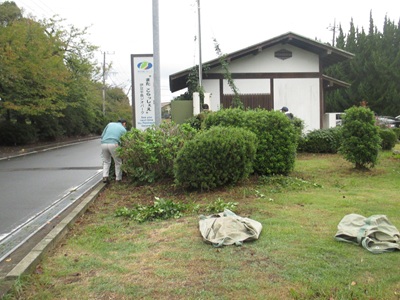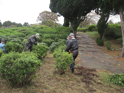 ツツジの木に絡まったつたの除去、下草の雑草抜き、伸びた木の選定などを行ないました。